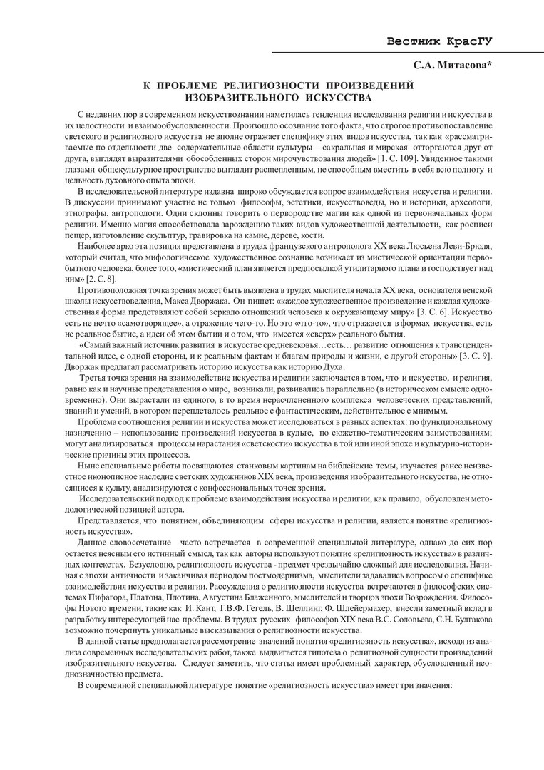 Библиографическое описание:Митасова, Светлана Алексеевна. К проблеме религиозности произведений изобразительного искусства / С. А. Митасова. - Текст : непосредственный // Вестник Красноярского государственного университета. - 2005. - Гуманитарные науки, № 3. - С. 59-65. - Библиогр. в конце ст.