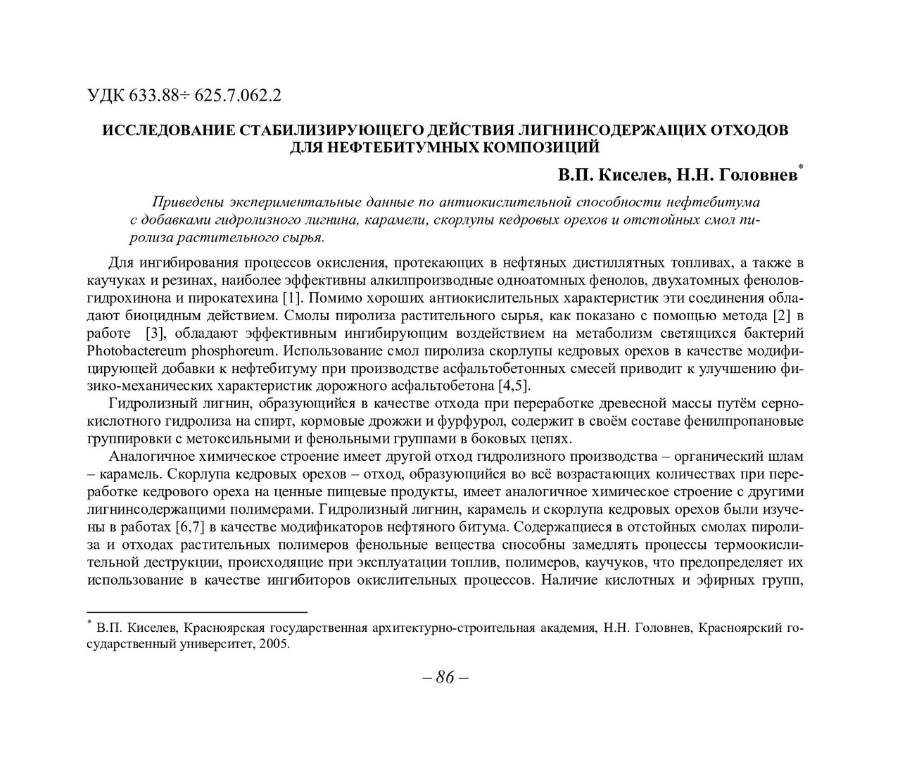 Библиографическое описание:Киселев, В. П. Исследование стабилизирующего действия лигнинсодержащих отходов для нефтебитумных композиций / В. П. Киселев, Н. Н. Головнев. - Текст : непосредственный // Вестник Красноярского государственного университета. - 2005. - Естественные науки, № 2. - С. 86-89. - Библиогр. в конце ст.