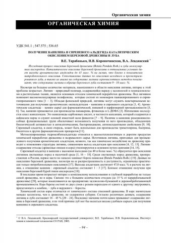 Библиографическое описание:Тарабанько, В. Е. Получение ванилина и сиреневого альдегида каталитическим окислением березовой древесины и луба / В. Е. Тарабанько, Н. В. Коропачинская, В. А. Левданский. - Текст : непосредственный // Вестник Красноярского государственного университета. - 2005. - Естественные науки, № 2. - С. 94-101. - Библиогр. в конце ст.