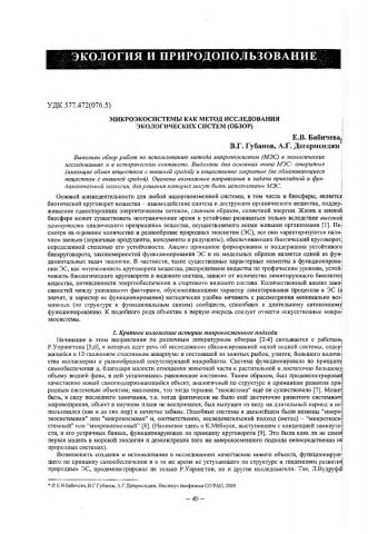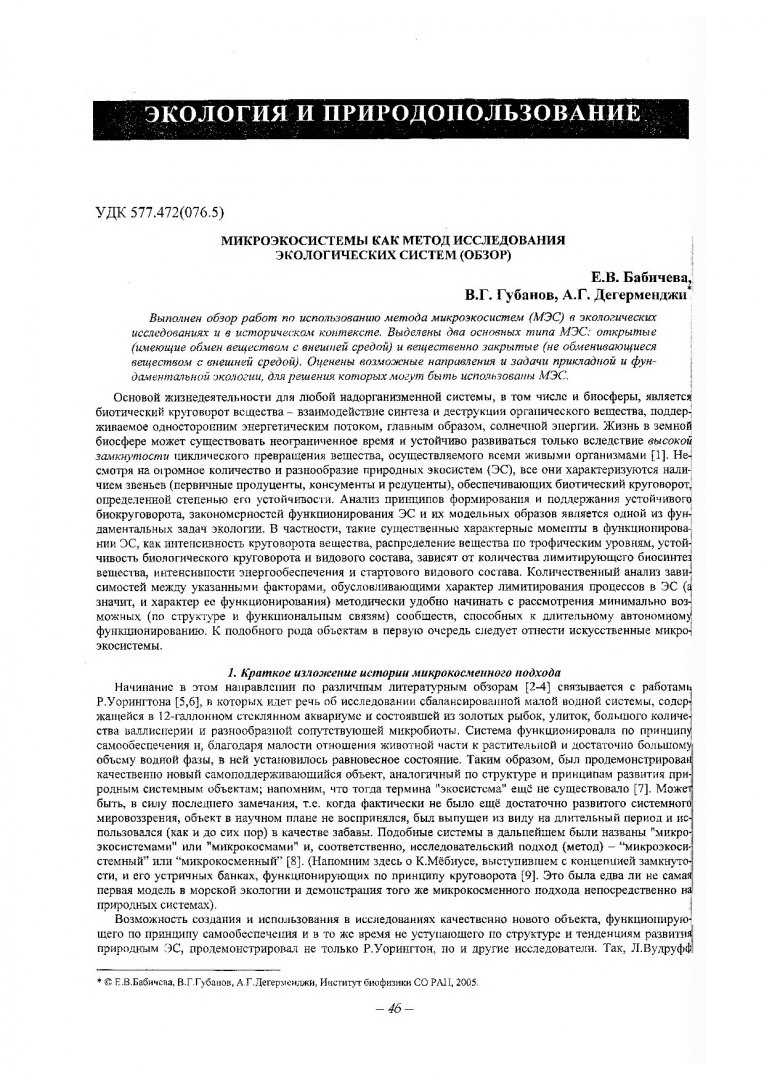 Библиографическое описание:Бабичева, Е. В. Микроэкосистемы как метод исследования экологических систем (обзор) / Е. В. Бабичева, В. Г. Губанов, А. Г. Дегерменджи. - Текст : электронный // Вестник Красноярского государственного университета. - 2005. - Естественные науки, № 5. - С. 46-55. - Библиогр. в конце ст.