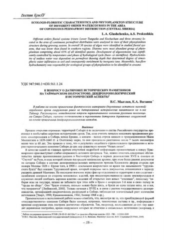 Библиографическое описание:Мыглан, Владимир Станиславович. К вопросу о датировке исторических памятников на Таймырском полуострове: дендрохронологический и исторический аспекты / В. С. Мыглан, Е. А. Ваганов. - Текст : электронный // Вестник Красноярского государственного университета. - 2005. - Естественные науки, № 5. - С. 176-182. - Библиогр. в конце ст.