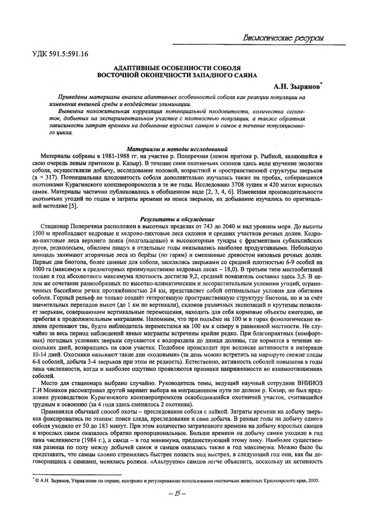 Библиографическое описание:Зырянов, Анатолий Николаевич. Адаптивные особенности соболя восточной оконечности Западного Саяна / А. Н. Зырянов. - Текст : электронный // Вестник Красноярского государственного университета. - 2005. - Естественные науки, № 5. - С. 15-18. - Библиогр. в конце ст.