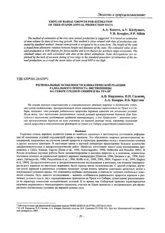 Библиографическое описание:Кирдянов, Александр Викторович. Региональные особенности климатической реакции радиального прироста лиственницы на севере Средней Сибири и на Урале / А. В. Кирдянов, П. П. Силкин, А. А. Кнорре, Владимир Борисович Круглов. - Текст : электронный // Вестник Красноярского государственного университета. - 2005. - Естественные науки, № 5. - С. 79-84. - Библиогр. в конце ст.
