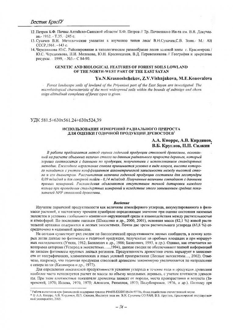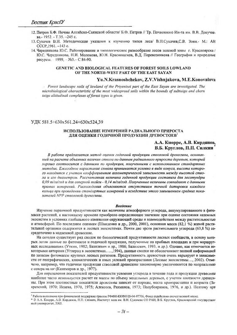 Библиографическое описание:Кнорре, Анастасия Алексеевна. Использование измерений радиального прироста для оценки годичной продукции древостоев / А. А. Кнорре, А. В. Кирдянов, В. Б. Круглов, Павел Павлович Силкин. - Текст : электронный // Вестник Красноярского государственного университета. - 2005. - Естественные науки, № 5. - С. 74-79. - Библиогр. в конце ст.