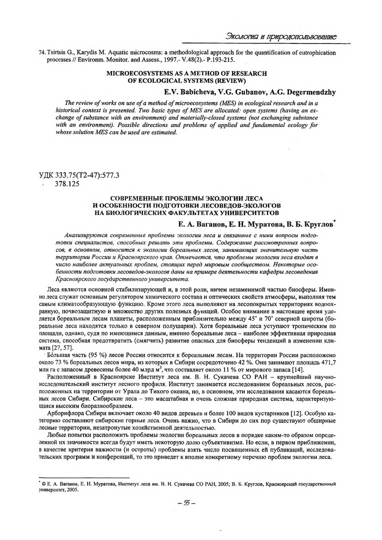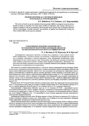 Библиографическое описание:Ваганов, Евгений Александрович. Современные проблемы экологии леса и особенности подготовки лесоведов-экологов на биологических факультетах университетов / Е. А. Ваганов, Е. Н. Муратова, В. Б. Круглов. - Текст : электронный // Вестник Красноярского государственного университета. - 2005. - Естественные науки, № 5. - С. 55-62. - Библиогр. в конце ст.