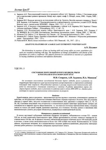 Библиографическое описание:Смирнов, Марк Николаевич. Состояние популяций бурого медведя, рыси и росомахи в Красноярском крае / М. Н. Смирнов, А. Н. Зырянов, И. А. Минаков. - Текст : электронный // Вестник Красноярского государственного университета. - 2005. - Естественные науки, № 5. - С. 18-28. - Библиогр. в конце ст.