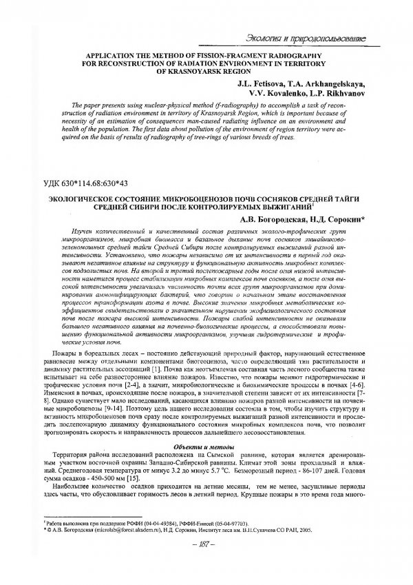 Библиографическое описание:Богородская, А. В. Экологическое состояние микробоценозов почв сосняков средней тайги Средней Сибири после контролируемых выжиганий / А. В. Богородская, Н. Д. Сорокин. - Текст : электронный // Вестник Красноярского государственного университета. - 2005. - Естественные науки, № 5. - С. 187-194. - Библиогр. в конце ст.