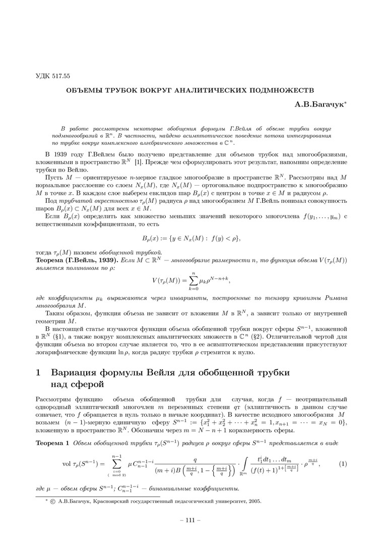 Библиографическое описание:Багачук, Анна Владимировна. Объемы трубок вокруг аналитических подмножеств / А. В. Багачук. - Текст : непосредственный // Вестник Красноярского государственного университета. - 2005. - Физико-математические науки, № 1. - С. 111-118. - Библиогр. в конце ст.