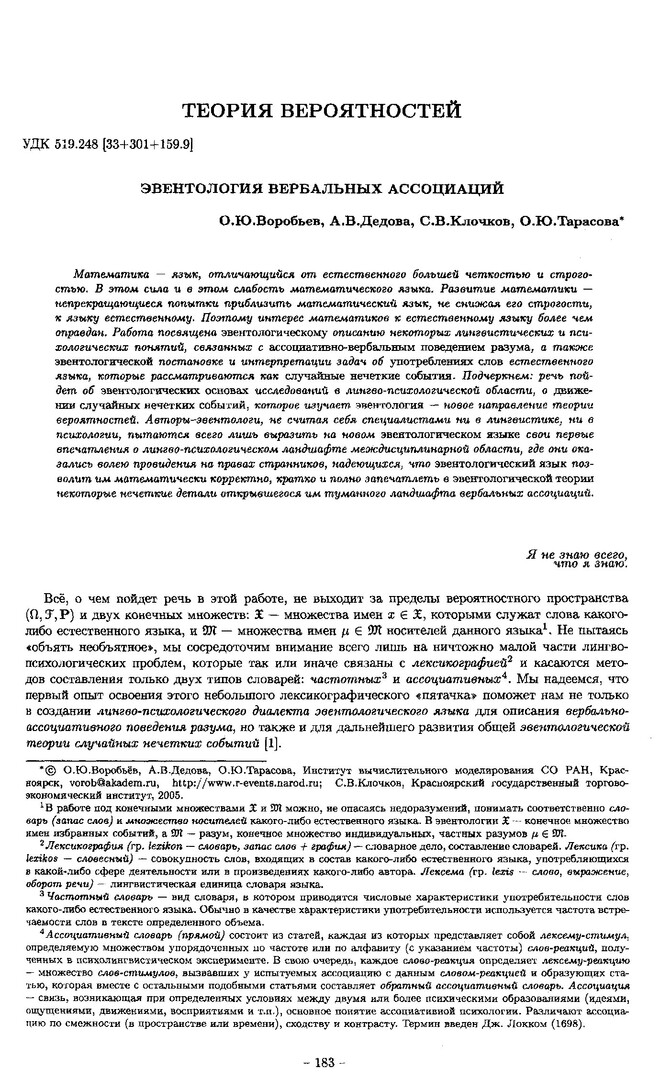 Библиографическое описание:Эвентология вербальных ассоциаций / О. Ю. Воробьев, А. В. Дедова, С. В. Клочков, О. Ю. Тарасова. - Текст : непосредственный // Вестник Красноярского государственного университета. - 2005. - Физико-математические науки, № 1. - С. 183-194. - Библиогр. в конце ст.