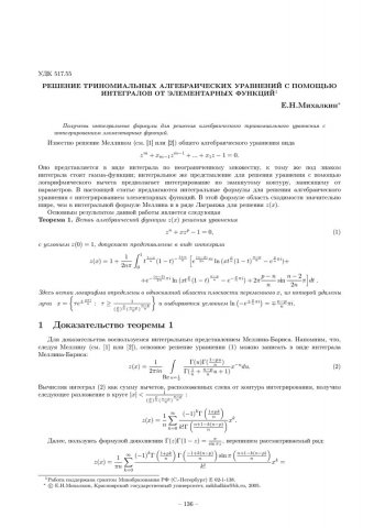 Библиографическое описание:Михалкин, Евгений Николаевич. Решение триномиальных алгебраических уравнений с помощью интегралов от элементарных функций / Е. Н. Михалкин. - Текст : непосредственный // Вестник Красноярского государственного университета. - 2005. - Физико-математические науки, № 1. - С. 136-140. - Библиогр. в конце ст.