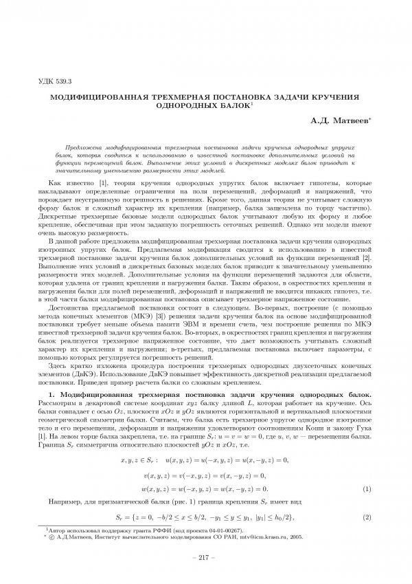 Библиографическое описание:Матвеев, Александр Данилович. Модифицированная трехмерная постановка задачи кручения однородных балок / А. Д. Матвеев. - Текст : непосредственный // Вестник Красноярского государственного университета. - 2005. - Физико-математические науки, № 1. - С. 217-223. - Библиогр. в конце ст.