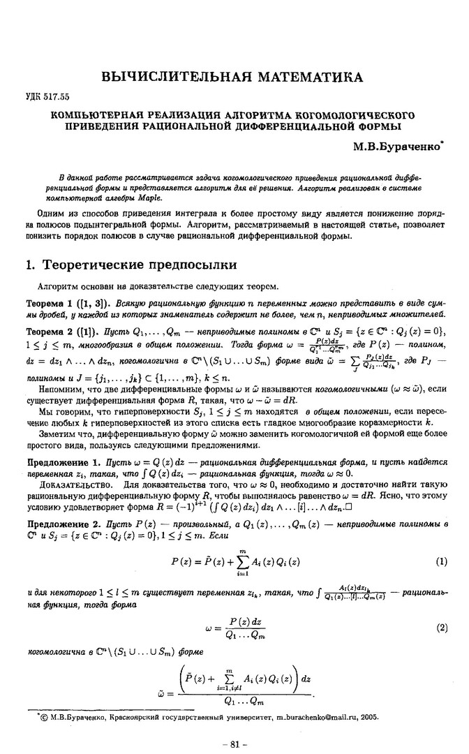 Библиографическое описание:Бураченко, Мария Викторовна. Компьютерная реализация алгоритма когомологического приведения рациональной дифференциальной формы / М. В. Бураченко. - Текст : непосредственный // Вестник Красноярского государственного университета. - 2005. - Физико-математические науки, № 1. - С. 81-86. - Библиогр. в конце ст.