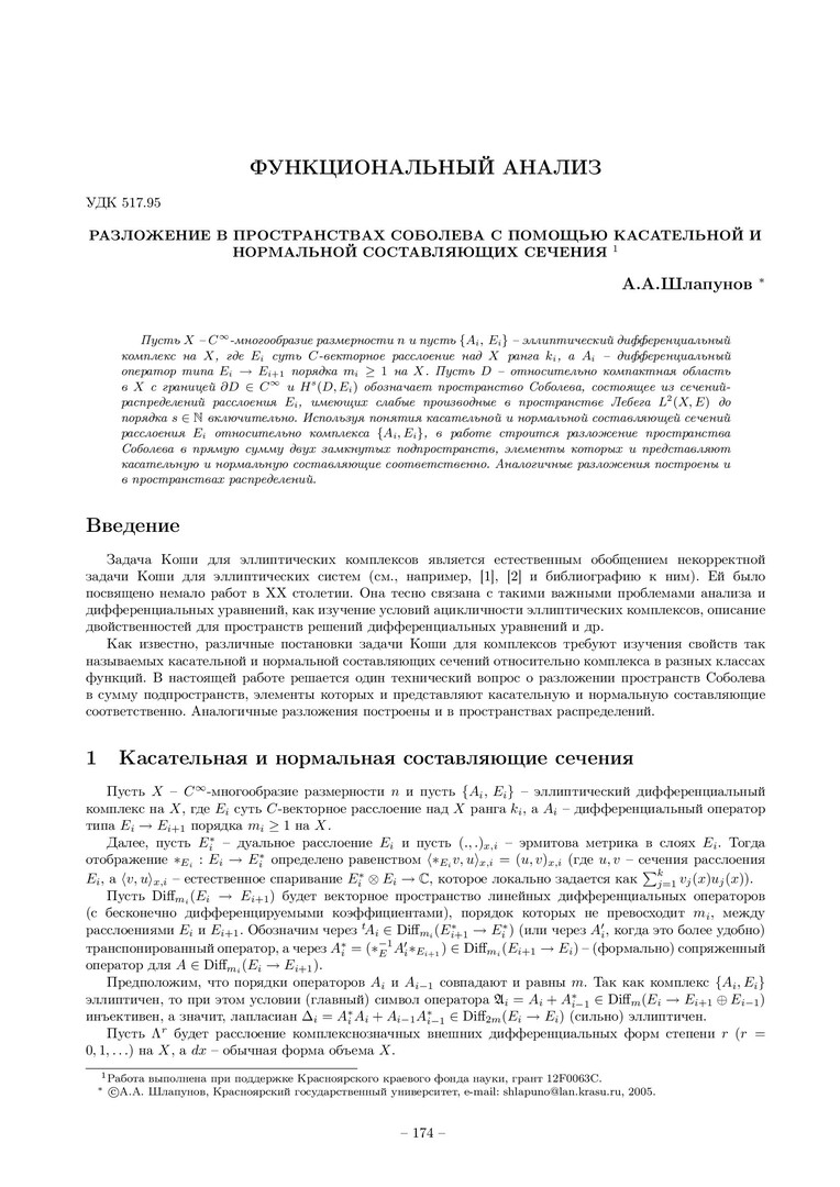 Библиографическое описание:Шлапунов, Александр Анатольевич. Разложение в пространствах Соболева с помощью касательной и нормальной составляющих сечения / А. А. Шлапунов. - Текст : непосредственный // Вестник Красноярского государственного университета. - 2005. - Физико-математические науки, № 1. - С. 174-179. - Библиогр. в конце ст.