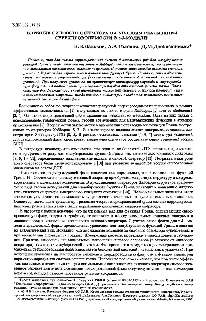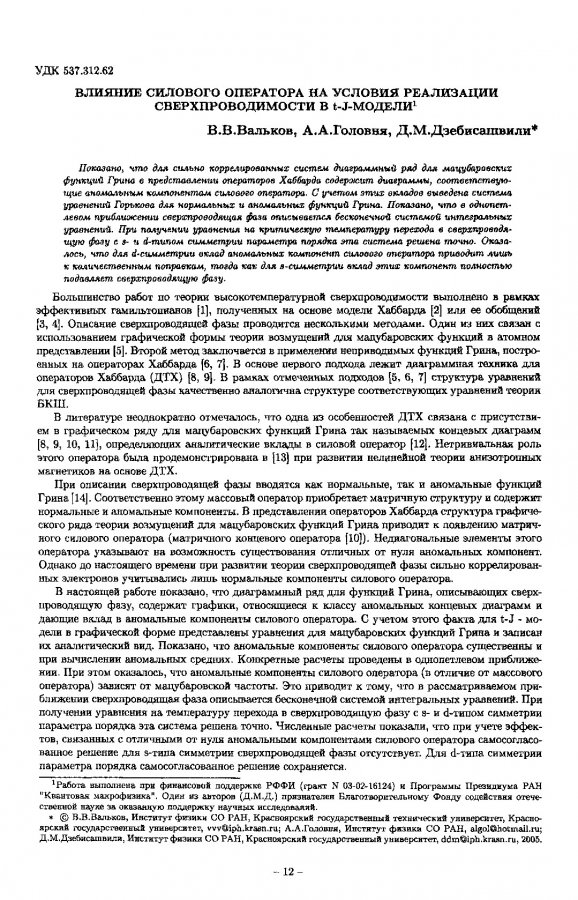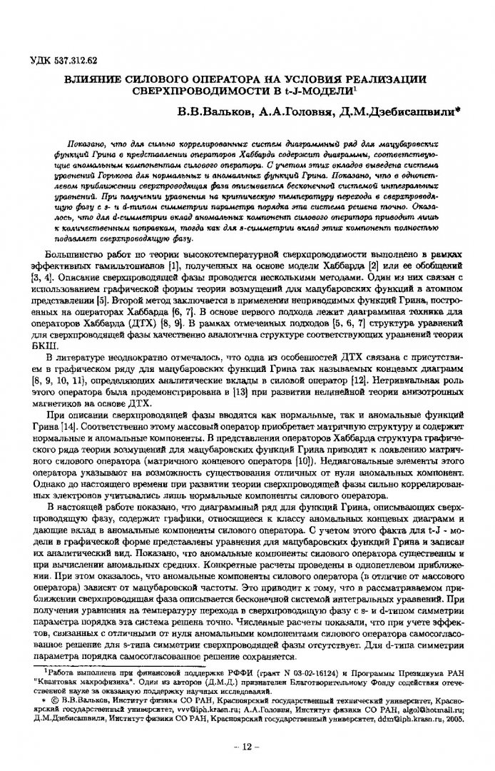 Библиографическое описание:Вальков, Валерий Владимирович. Влияние силового оператора на условия реализации сверхпроводимости в t-J-модели / В. В. Вальков, А. А. Головня, Д. М. Дзебисашвили. - Текст : непосредственный // Вестник Красноярского государственного университета. - 2005. - Физико-математические науки, № 1. - С. 12-20. - Библиогр. в конце ст.