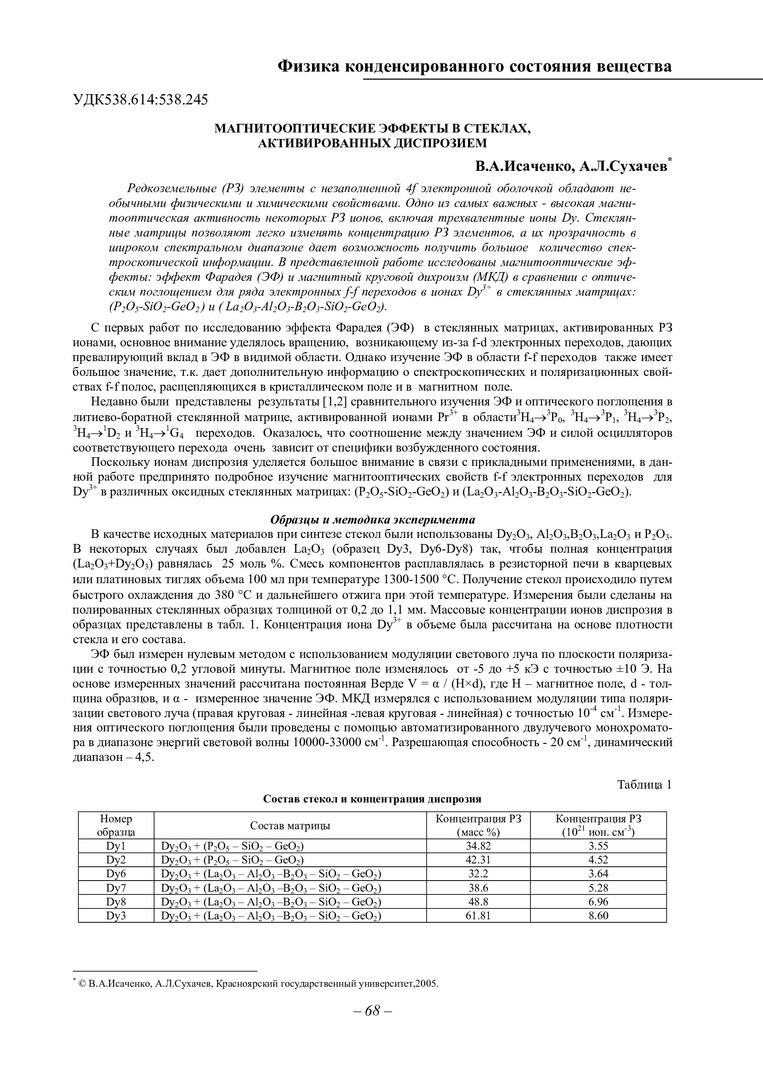 Библиографическое описание:Исаченко, В. А. Магнитооптические эффекты в стеклах, активированных диспрозием / В. А. Исаченко, А. Л. Сухачев. - Текст : непосредственный // Вестник Красноярского государственного университета. - 2005. - Физико-математические науки, № 4. - С. 68-73. - Библиогр. в конце ст.