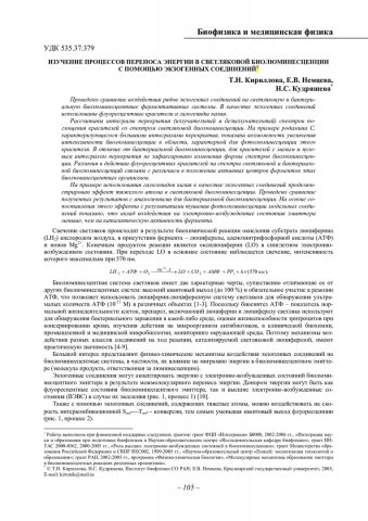 Библиографическое описание:Кириллова, Тамара Николаевна. Изучение процессов переноса энергии в светляковой биолюминесценции с помощью экзогенных соединений / Т. Н. Кириллова, Е. В. Немцева, Н. С. Кудряшева. - Текст : непосредственный // Вестник Красноярского государственного университета. - 2005. - Физико-математические науки, № 4. - С. 105-110. - Библиогр. в конце ст.