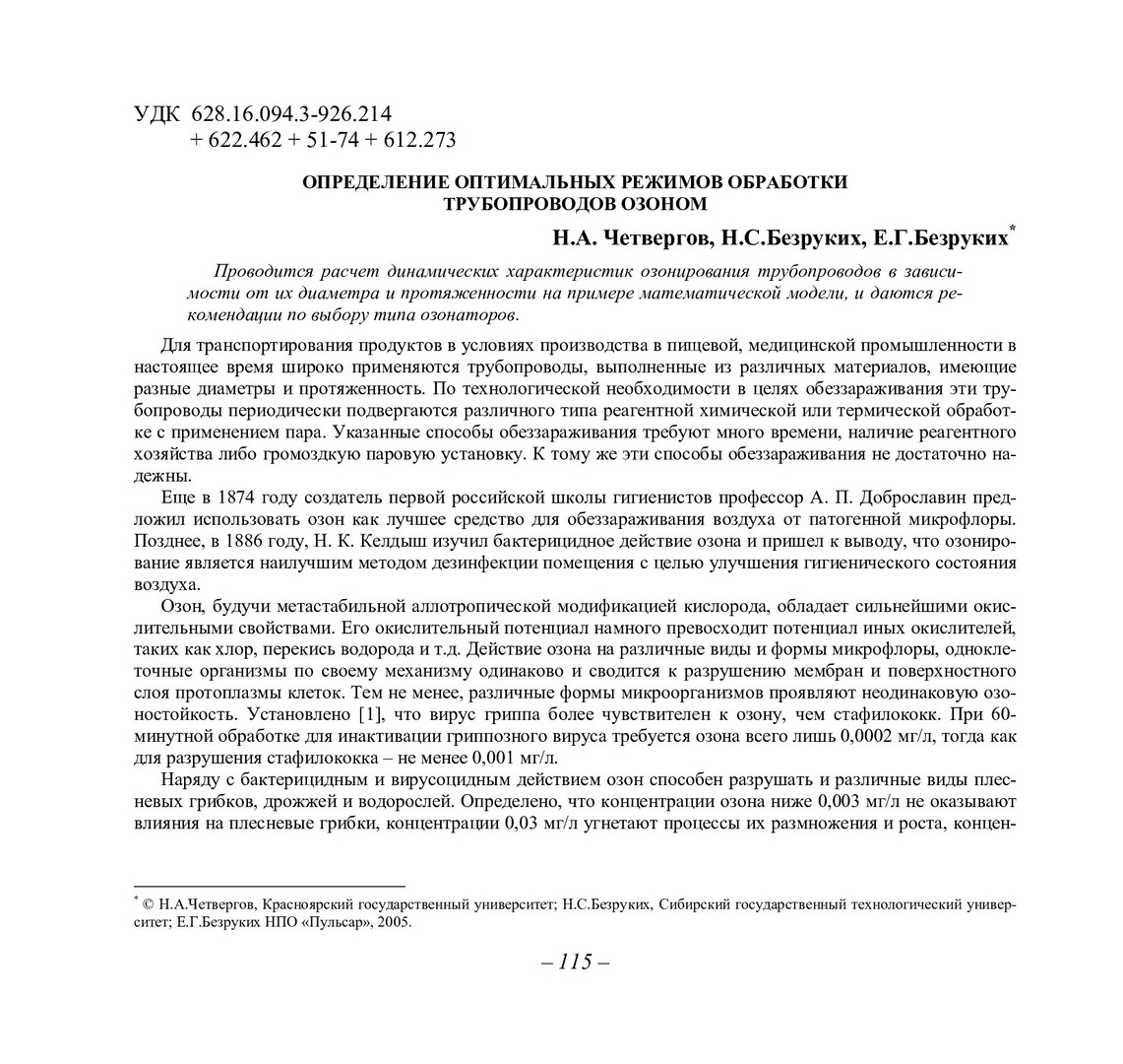 Библиографическое описание:Четвергов, Николай Антонович. Определение оптимальных режимов обработки трубопроводов озоном / Н. А. Четвергов, Н. С. Безруких, Е. Г. Безруких. - Текст : непосредственный // Вестник Красноярского государственного университета. - 2005. - Физико-математические науки, № 4. - С. 115-119. - Библиогр. в конце ст.