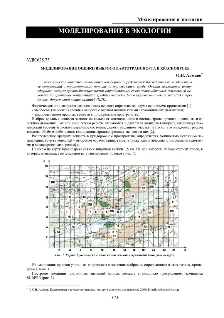 Библиографическое описание:Адмаев, Олег Васильевич. Моделирование оценки выбросов автотранспорта в Красноярске / О. В. Адмаев. - Текст : непосредственный // Вестник Красноярского государственного университета. - 2005. - Физико-математические науки, № 4. - С. 143-150. - Библиогр. в конце ст.