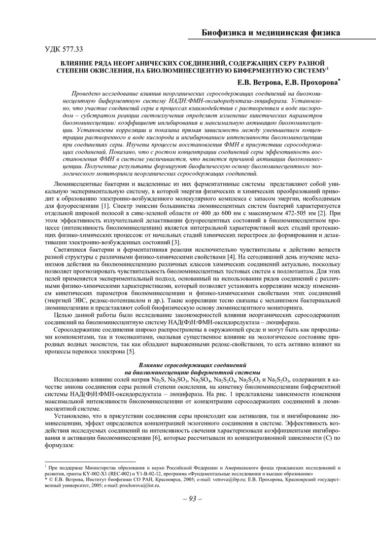 Библиографическое описание:Ветрова, Елена Владимировна. Влияние ряда неорганический соединений, содержащих серу разной степени окисления, на биолюминесцентную биферментную систему / Е. В. Ветрова, Е. В. Прохорова. - Текст : непосредственный // Вестник Красноярского государственного университета. - 2005. - Физико-математические науки, № 4. - С. 93-98. - Библиогр. в конце ст.