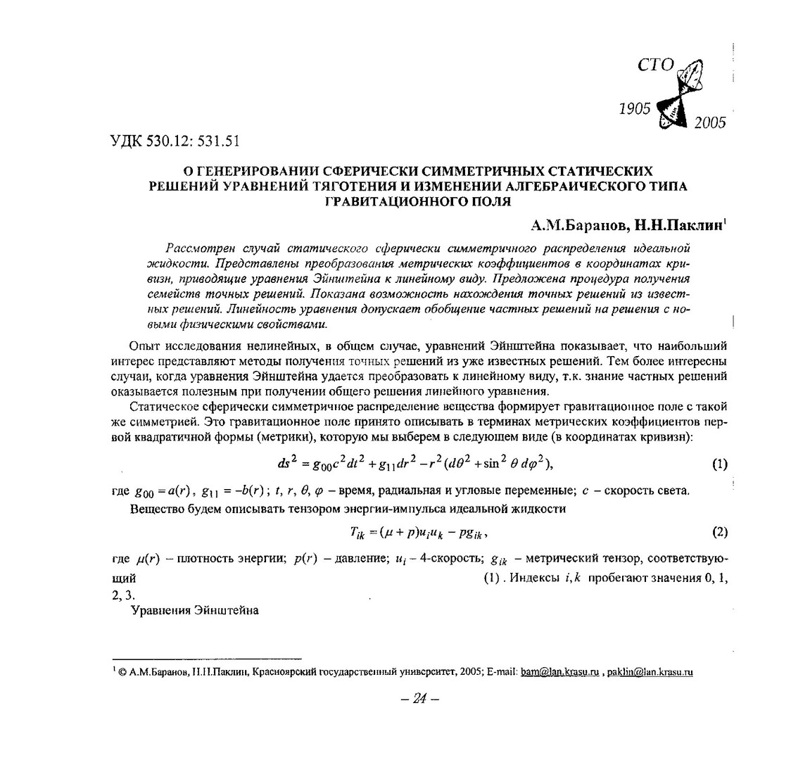 Библиографическое описание:Баранов, Александр Михайлович. О генерировании сферически симметричных статических решений уравнений тяготения и изменении алгебраического типа гравитационного поля / А. М. Баранов, Н. Н. Паклин. - Текст : электронный // Вестник Красноярского государственного университета. - 2005. - Физико-математические науки, № 7. - С. 24-29. - Библиогр. в конце ст.