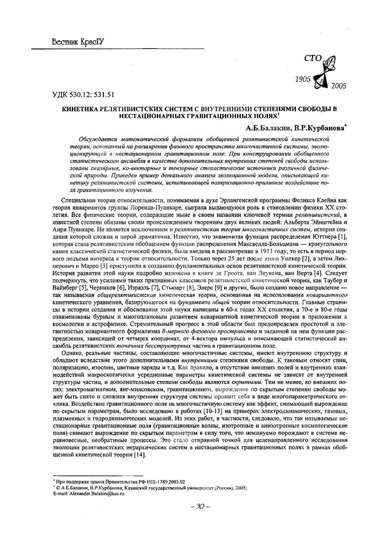 Библиографическое описание:Балакин, А. Б. Кинетика релятивистских систем с внутренними степенями свободы в нестационарных гравитационных полях / А. Б. Балакин, В. Р. Курбанова. - Текст : электронный // Вестник Красноярского государственного университета. - 2005. - Физико-математические науки, № 7. - С. 30-43. - Библиогр. в конце ст.