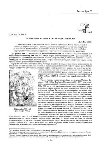 Библиографическое описание:Баранов, Александр Михайлович. Теория относительности - взгляд через 100 лет / А. М. Баранов. - Текст : электронный // Вестник Красноярского государственного университета. - 2005. - Физико-математические науки, № 7. - С. 3-11. - Библиогр. в конце ст.