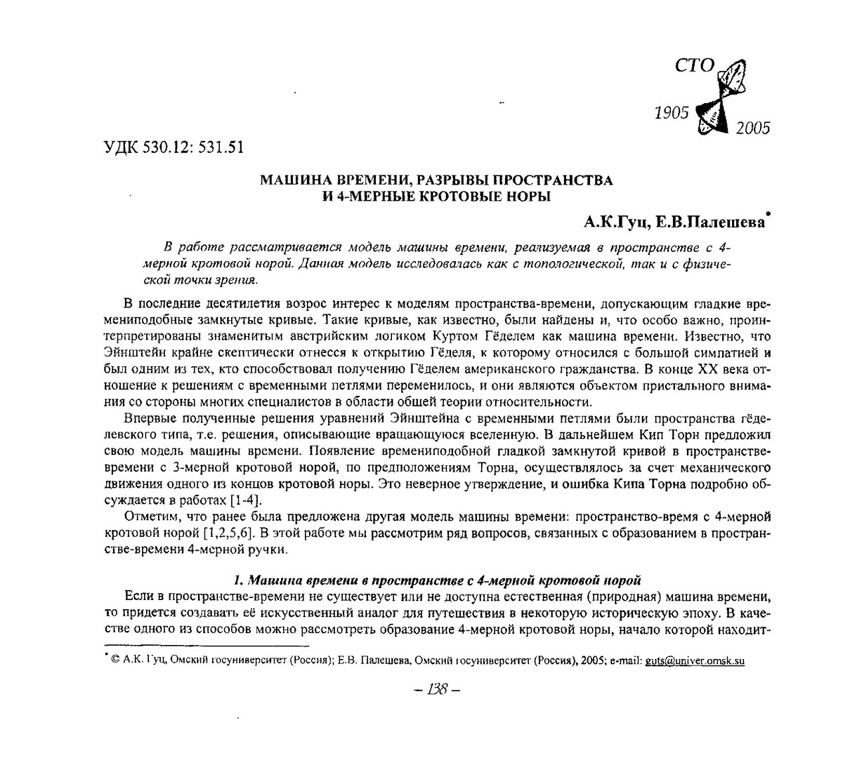 Библиографическое описание:Гуц, А. К. Машина времени, разрывы пространства и 4-мерные кротовые норы / А. К. Гуц, Е. В. Палешева. - Текст : электронный // Вестник Красноярского государственного университета. - 2005. - Физико-математические науки, № 7. - С. 138-142. - Библиогр. в конце ст.