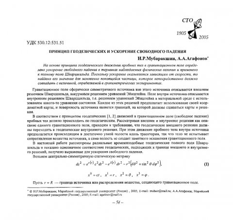 Библиографическое описание:Мубаракшин, И. Р. Принцип геодезических и ускорение свободного падения / И. Р. Мубаракшин, А. А. Агафонов. - Текст : электронный // Вестник Красноярского государственного университета. - 2005. - Физико-математические науки, № 7. - С. 54-58. - Библиогр. в конце ст.