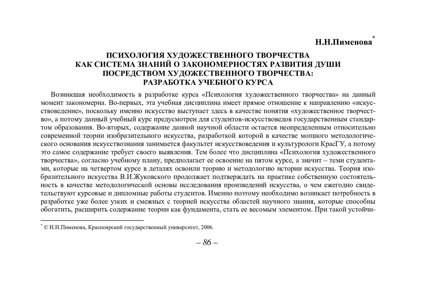 Психология художественного творчества как система знаний о закономерностях развития души посредством художественного творчества: разработка учебного курса