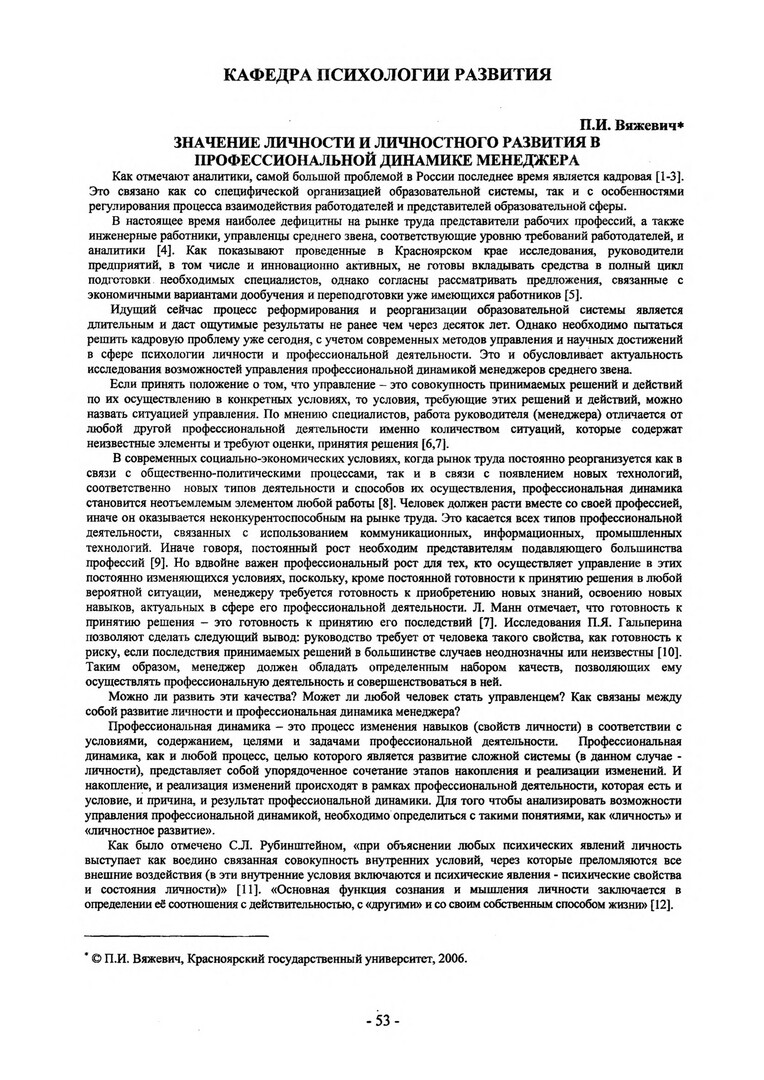 Библиографическое описание:Вяжевич, Полина Игоревна. Значение личности и личностного развития в профессиональной динамике менеджера / П. И. Вяжевич. - Текст : непосредственный // Вестник Красноярского государственного университета. - 2006. - Гуманитарные науки, № 11. - С. 53-56. - Библиогр. в конце ст.