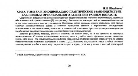 Библиографическое описание:Щербаков, Николай Николаевич. Смех, улыбка и эмоционально-практическое взаимодействие как индикатор нормального развития в раннем возрасте / Н. Н. Щербаков. - Текст : непосредственный // Вестник Красноярского государственного университета. - 2006. - Гуманитарные науки, № 11. - С. 90-92. - Библиогр. в конце ст.