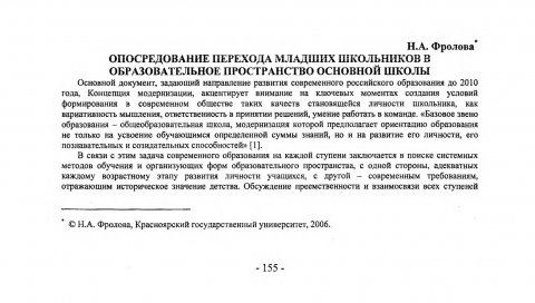 Библиографическое описание:Фролова, Н. А. Опосредование перехода младших школьников в образовательное пространство основной школы / Н. А. Фролова. - Текст : непосредственный // Вестник Красноярского государственного университета. - 2006. - Гуманитарные науки, № 11. - С. 155-160. - Библиогр. в конце ст.