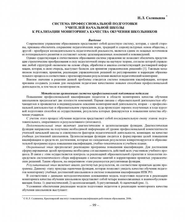 Библиографическое описание:Солянкина, Н. Л. Система профессиональной подготовки учителей начальной школы к реализации мониторинга качества обучения школьников / Н. Л. Солянкина. - Текст : непосредственный // Вестник Красноярского государственного университета. - 2006. - Гуманитарные науки, № 3(1). - С. 99-102. - Библиогр. в конце ст.