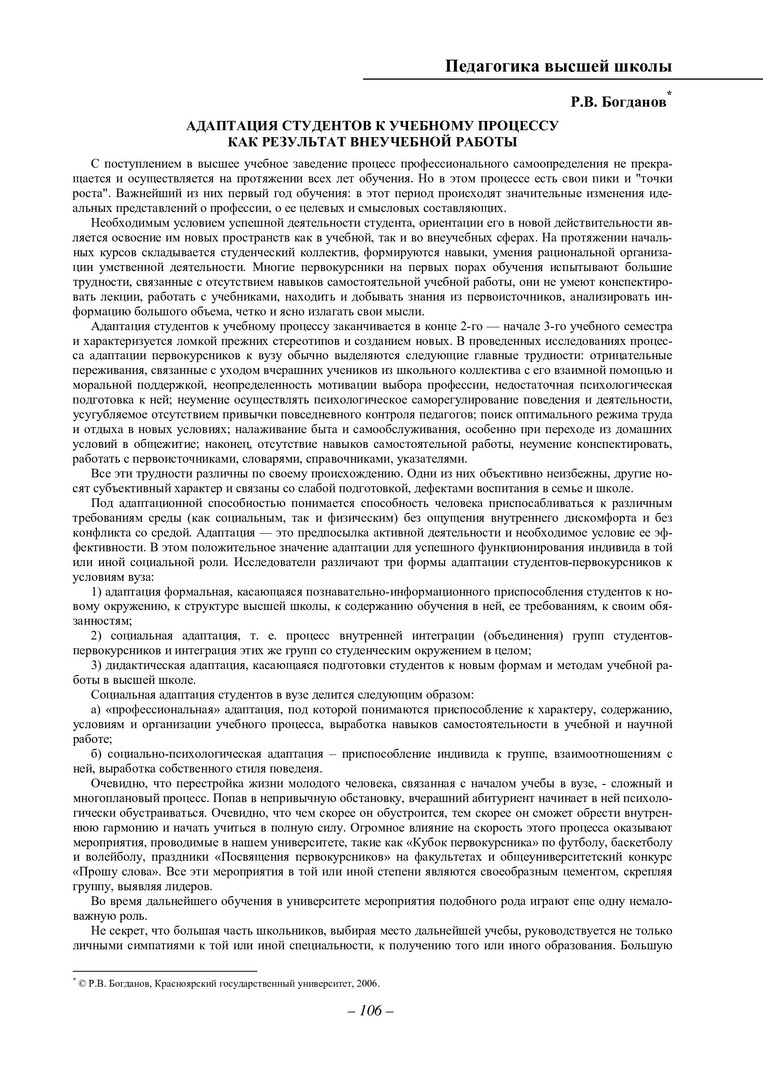 Библиографическое описание:Богданов, Роман Васильевич. Адаптация студентов к учебному процессу как результат внеучебной работы / Р. В. Богданов. - Текст : непосредственный // Вестник Красноярского государственного университета. - 2006. - Гуманитарные науки, № 3(1). - С. 106-107.