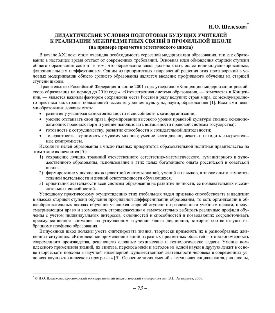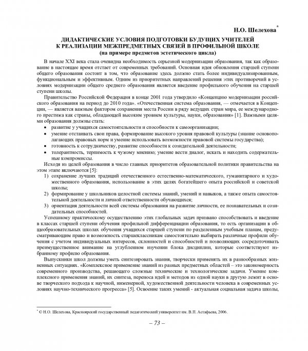 Библиографическое описание:Шелехова, Н. О. Дидактические условия подготовки будущих учителей к реализации межпредметных связей в профильной школе : (на примере предметов эстетического цикла) / Н. О. Шелехова. - Текст : непосредственный // Вестник Красноярского государственного университета. - 2006. - Гуманитарные науки, № 3(1). - С. 73-76. - Библиогр. в конце ст.