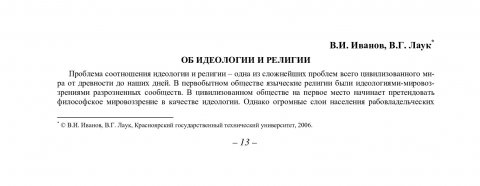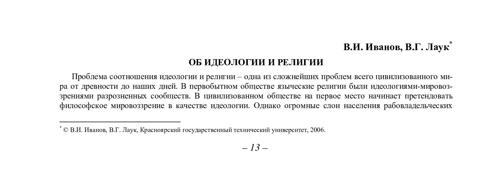 Иванов, В. И. Об идеологии и религии / В. И. Иванов, В. Г. Лаук. - Текст : непосредственный // Вестник Красноярского государственного университета. - 2006. - Гуманитарные науки, № 3(2). - С. 13-19.