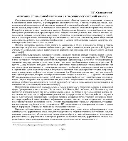 Библиографическое описание:Синьковская, Ирина Георгиевна. Феномен социальной рекламы и его социологический анализ / И. Г. Синьковская. - Текст : непосредственный // Вестник Красноярского государственного университета. - 2006. - Гуманитарные науки, № 3(2). - С. 30-34. - Библиогр. в конце ст.