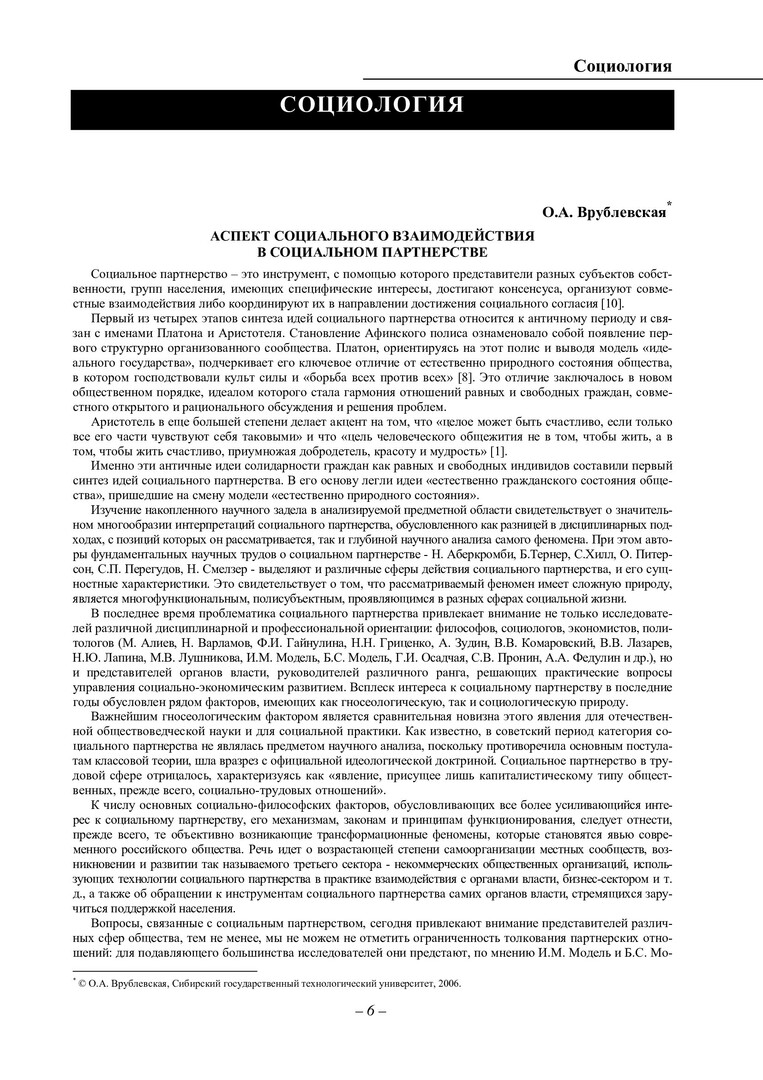 Библиографическое описание:Врублевская, Оксана Алексеевна. Аспект социального взаимодействия в социальном партнерстве / О. А. Врублевская. - Текст : непосредственный // Вестник Красноярского государственного университета. - 2006. - Гуманитарные науки, № 3(2). - С. 6-10. - Библиогр. в конце ст.