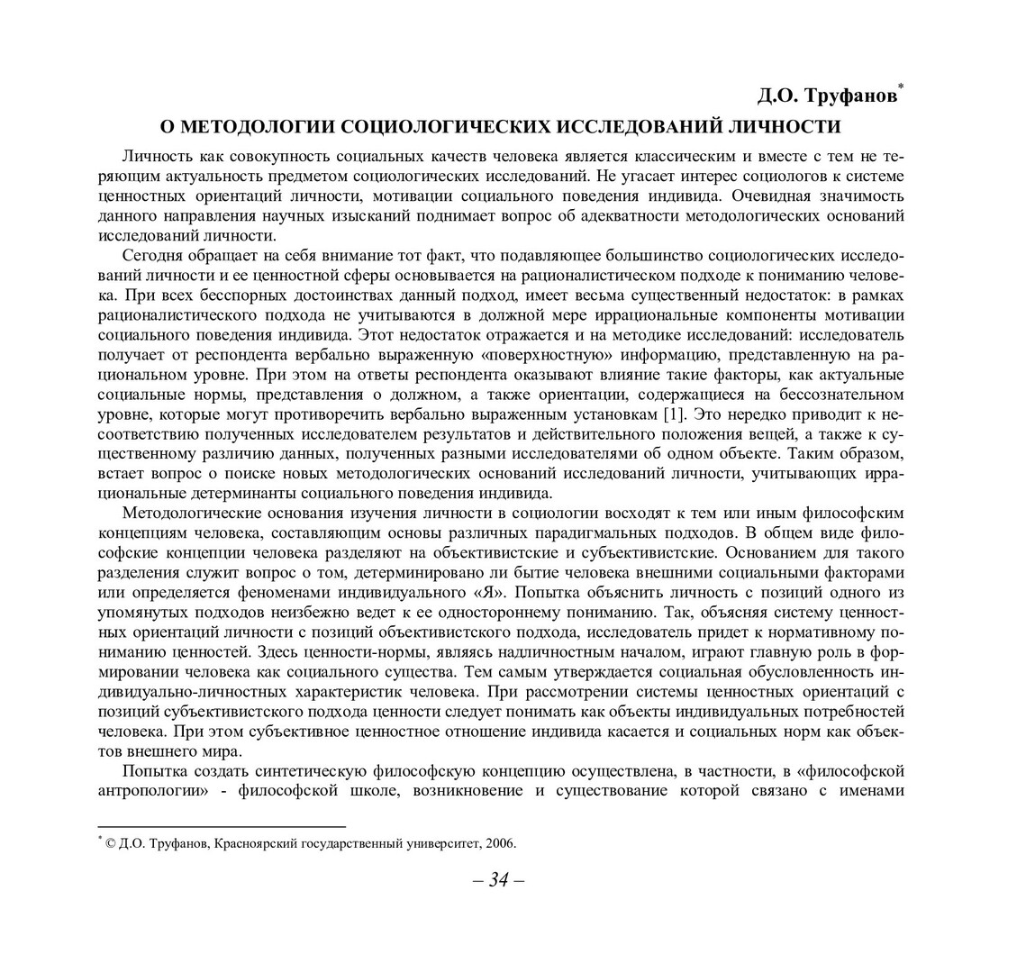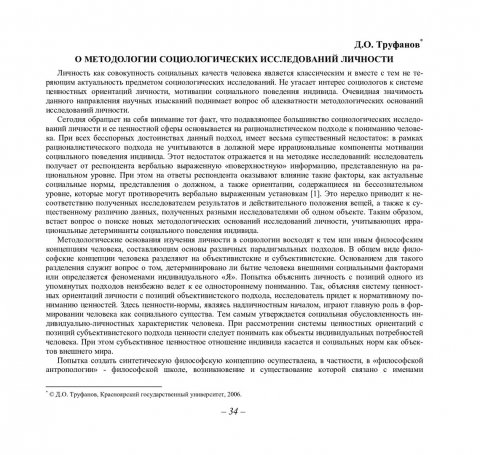 Библиографическое описание:Труфанов, Дмитрий Олегович. О методологии социологических исследований личности / Д. О. Труфанов. - Текст : непосредственный // Вестник Красноярского государственного университета. - 2006. - Гуманитарные науки, № 3(2). - С. 34-38. - Библиогр. в конце ст.