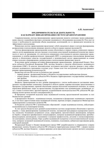 Библиографическое описание:Аксютенко, А. Н. Предпринимательская деятельность как вариант финансирования системы здравоохранения / А. Н. Аксютенко. - Текст : непосредственный // Вестник Красноярского государственного университета. - 2006. - Гуманитарные науки, № 3(2). - С. 73-77. - Библиогр. в конце ст.