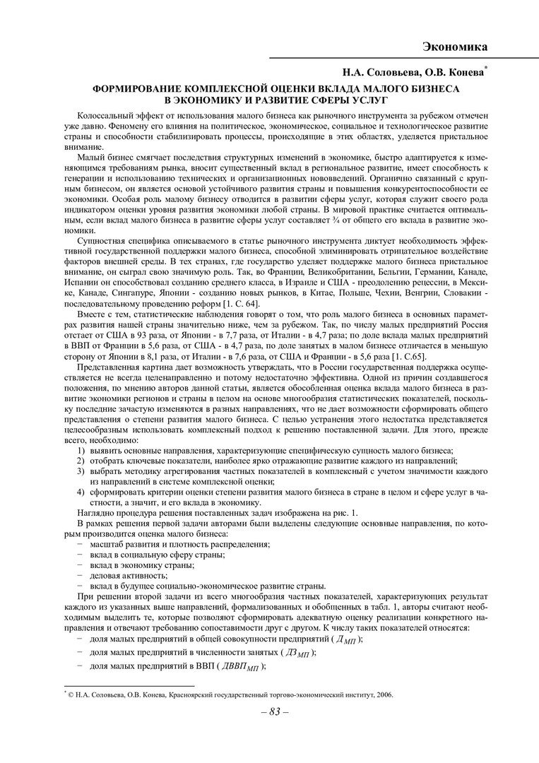 Библиографическое описание:Соловьева, Наталья Александровна. Формирование комплексной оценки вклада малого бизнеса в экономику и развитие сферы услуг / Н. А. Соловьева, О. В. Конева. - Текст : непосредственный // Вестник Красноярского государственного университета. - 2006. - Гуманитарные науки, № 3(2). - С. 83-88. - Библиогр. в конце ст.