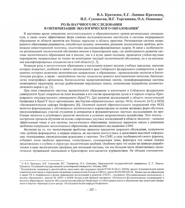 Библиографическое описание:Роль научного исследования в оптимизации экологического образования / В. А. Кратасюк, Е. Г. Лапина-Кратасюк, И. Е. Суковатая [и др.]. - Текст : непосредственный // Вестник Красноярского государственного университета. - 2006. - Гуманитарные науки, № 6(1). - С. 281-286. - Библиогр. в конце ст.