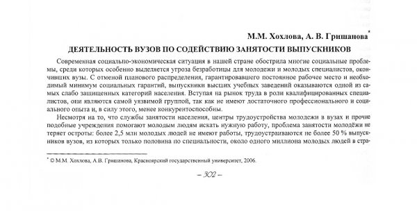Библиографическое описание:Хохлова, Мария Михайловна. Деятельность вузов по содействию занятости выпускников / М. М. Хохлова, А. В. Гришанова. - Текст : непосредственный // Вестник Красноярского государственного университета. - 2006. - Гуманитарные науки, № 6(1). - С. 302-309. - Библиогр. в конце ст.