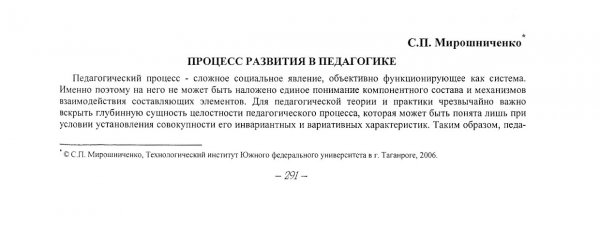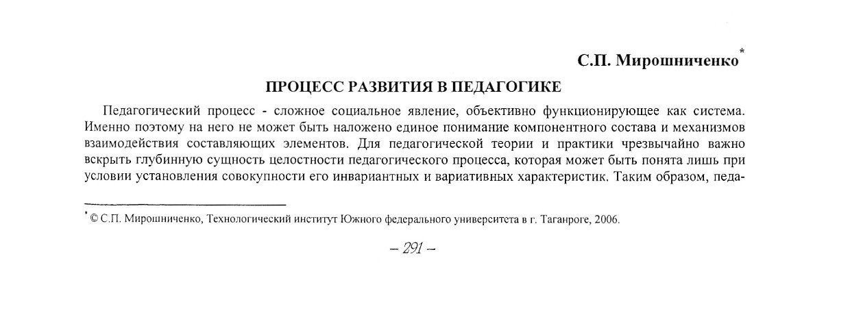 Библиографическое описание:Мирошниченко, С. П. Процесс развития в педагогике / С. П. Мирошниченко. - Текст : непосредственный // Вестник Красноярского государственного университета. - 2006. - Гуманитарные науки, № 6(1). - С. 291-294. - Библиогр. в конце ст.