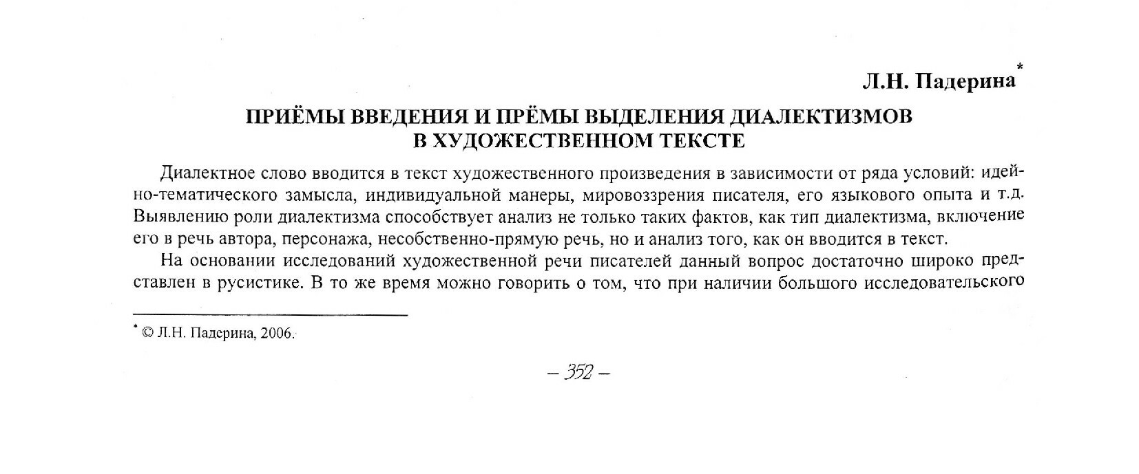 Библиографическое описание:Падерина, Л. Н. Приемы введения и приемы выделения диалектизмов в художественном тексте / Л. Н. Падерина. - Текст : непосредственный // Вестник Красноярского государственного университета. - 2006. - Гуманитарные науки, № 6(1). - С. 352-355. - Библиогр. в конце ст.