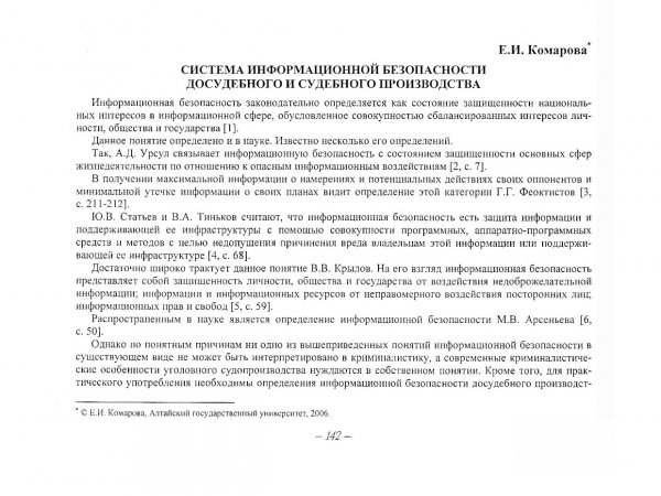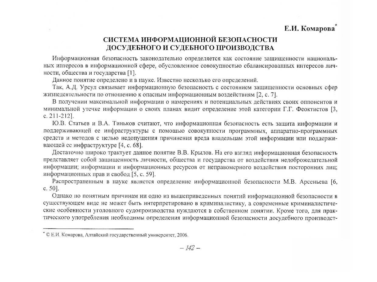 Библиографическое описание:Комарова, Е. И. Система информационной безопасности досудебного и судебного производства / Е. И. Комарова. - Текст : непосредственный // Вестник Красноярского государственного университета. - 2006. - Гуманитарные науки, № 6(1). - С. 142-149. - Библиогр. в конце ст.