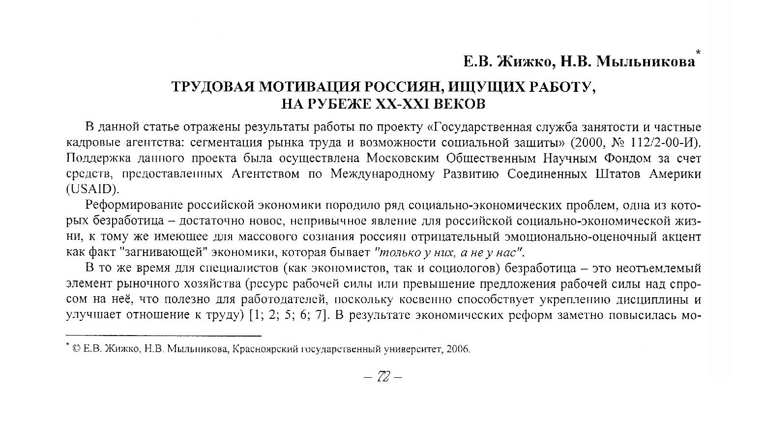 Библиографическое описание:Жижко, Елена Валерьевна. Трудовая мотивация россиян, ищущих работу, на рубеже XX-XXI веков / Е. В. Жижко, Н. В. Мыльникова. - Текст : непосредственный // Вестник Красноярского государственного университета. - 2006. - Гуманитарные науки, № 6(1). - С. 72-77. - Библиогр. в конце ст.