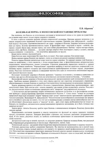 Библиографическое описание:Абрамов, Е. В. Болезнь как норма: к философской постановке проблемы / Е. В. Абрамов. - Текст : непосредственный // Вестник Красноярского государственного университета. - 2006. - Гуманитарные науки, № 6(1). - С. 7-9. - Библиогр. в конце ст.