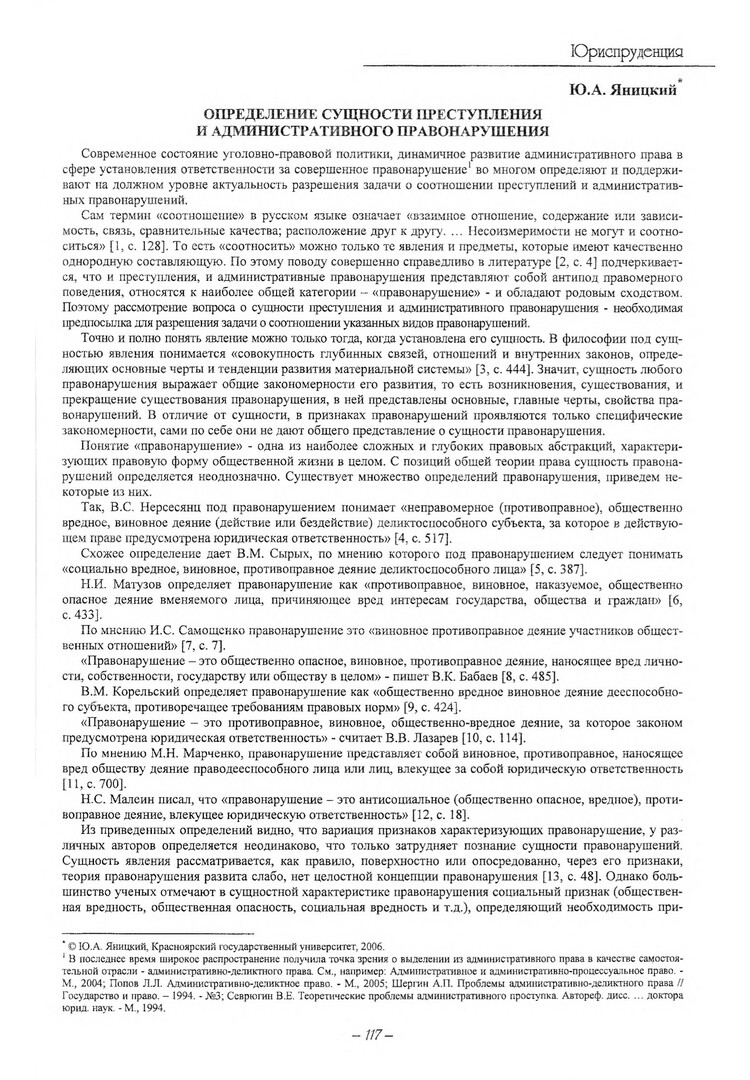 Библиографическое описание:Яницкий, Ю. А. Определение сущности преступления и административного правонарушения / Ю. А. Яницкий. - Текст : электронный // Вестник Красноярского государственного университета. - 2006. - Гуманитарные науки, № 6(2). - С. 117-122. - Библиогр. в конце ст.