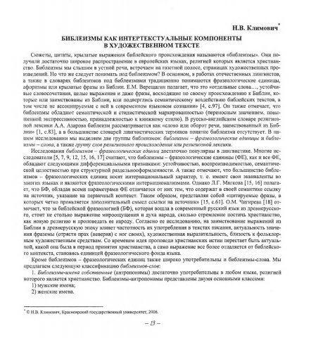 Библиографическое описание:Климович, Наталья Викторовна. Библеизмы как интертекстуальные компоненты в художественном тексте / Н. В. Климович. - Текст : электронный // Вестник Красноярского государственного университета. - 2006. - Гуманитарные науки, № 6(2). - С. 13-19. - Библиогр. в конце ст.